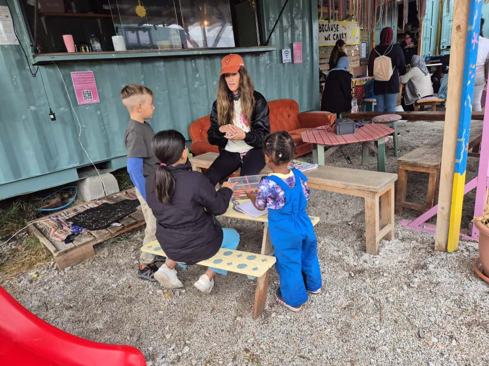 “We want to bring positivity into the camp,” she reminds us. “These people don’t need our sadness for them, they need our energy. Empathy, yes, but not pity. If they want to share, wonderful but it must always come from them first’’.