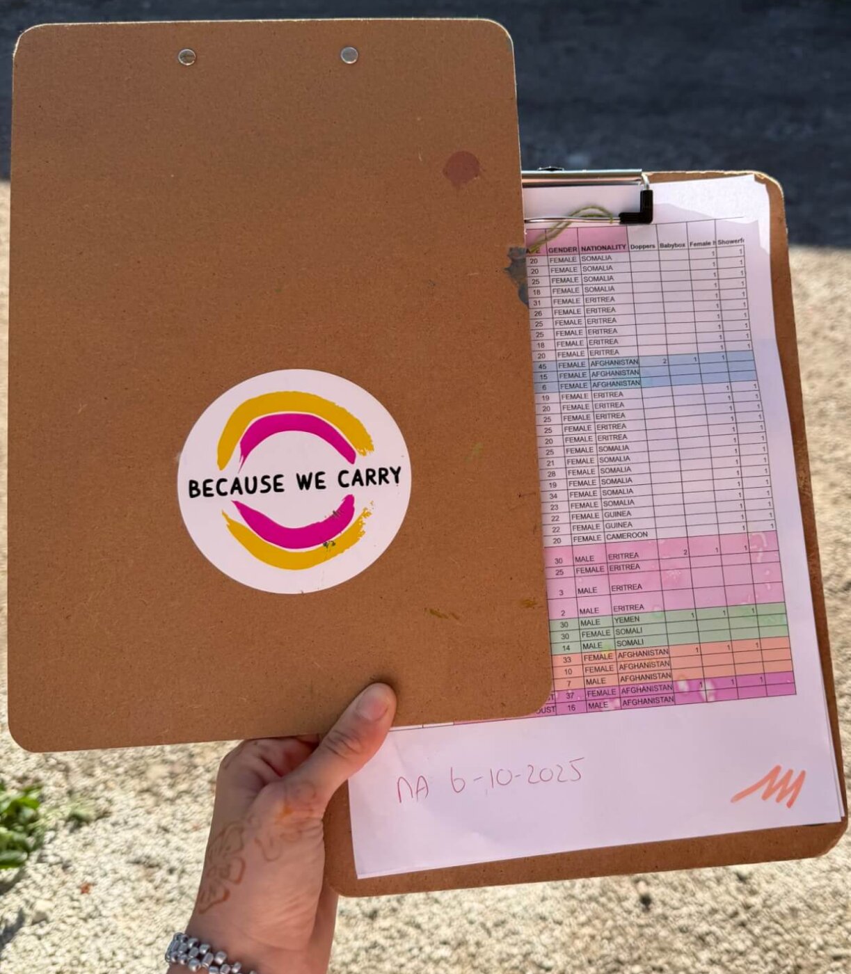 From the organization’s garden, we walk toward the camp with empty trolleys in hand, while Sanne drives ahead with the van full of supplies. At the gates, we unload boxes of hygiene kits, strollers, and essentials, then split into teams. Today we knock on the doors of new arrivals, deliver basic kits, and share information about activities: beauty mornings, creative afternoons for children, pregnancy workshops, and a small celebration planned for later in the week.